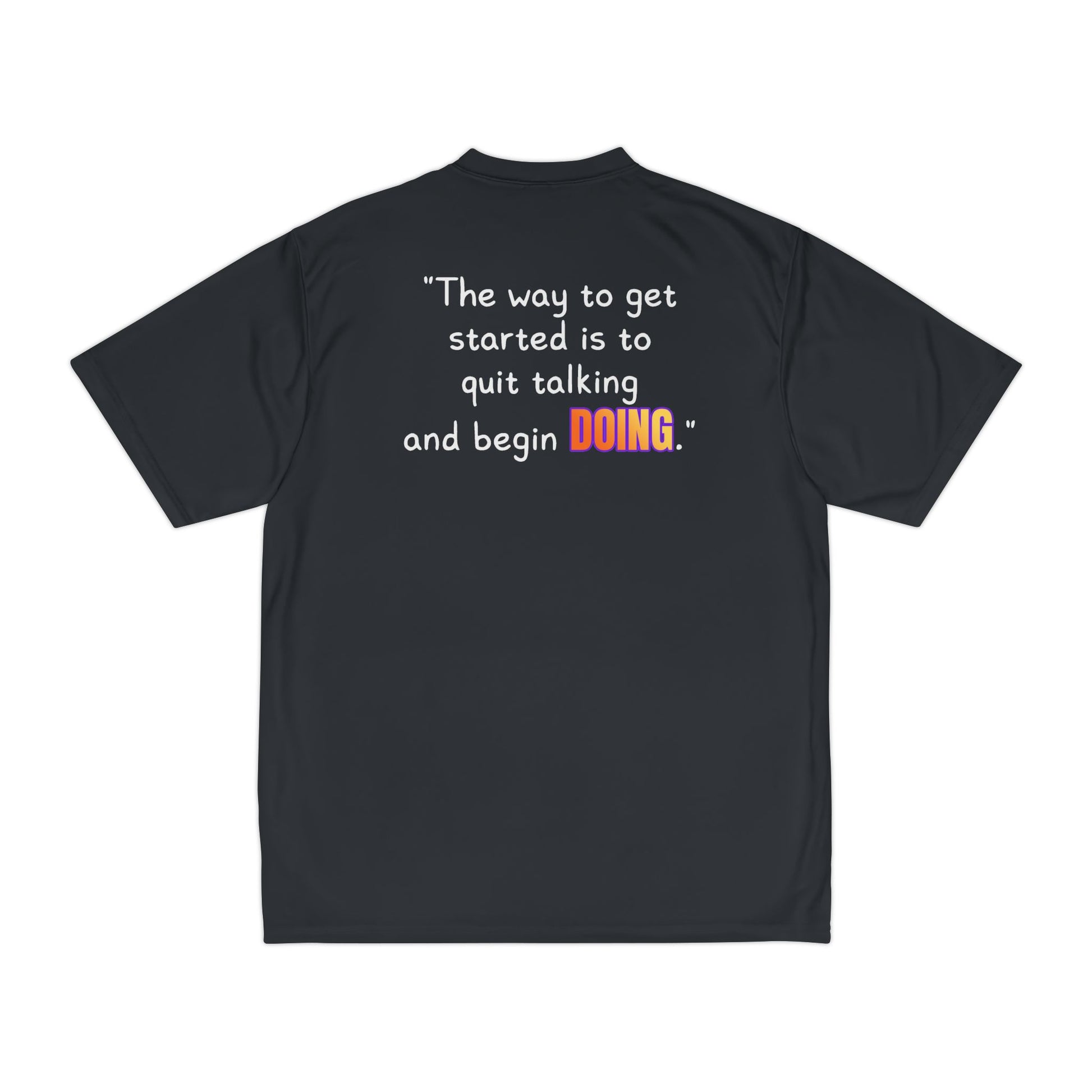 Words won’t build greatness—action will. The GOATI Men’s Performance T-Shirt features the quote “The Way to Get Started Is to Quit Talking and Begin Doing” on the back and the GOATI logo on the chest. It’s a call to move with purpose and let action speak louder than talk.